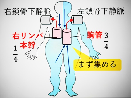 右リンパ循環は右鎖骨下静脈に注ぎ込みます
