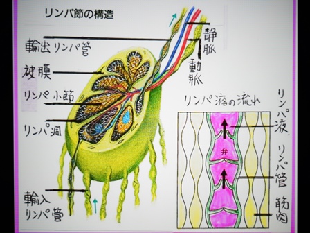リンパ節⇒免疫細胞リンパ球が老廃物、ウイルス、細菌等を浄化排除する