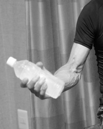 ⇒冷えたor凍らしたペットボトルをタオルで包まないで握る