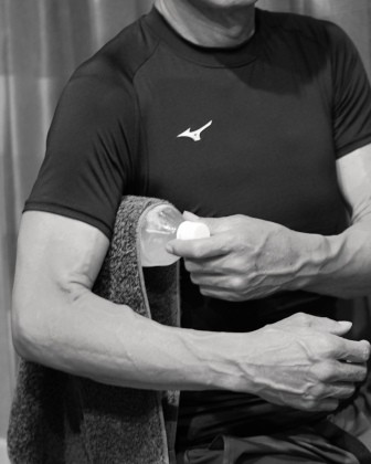 手掌アイシングは体幹深部熱を放出するイメージで。