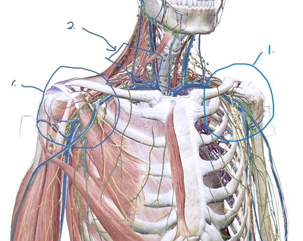 首から指先へと伸びる「腕神経叢(わんしんけいそう)」は、いわば電気コードの束です。その傍らには、水道や下水道にあたる血管・リンパ管も並走しています。