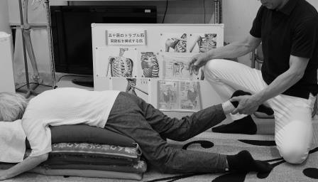 - 大腰筋から横隔膜へのコンタクト: 内臓の裏にあり、直接触れることを拒む「大腰筋」に対し、脚からの引き圧を通じてアプローチ。そこから胸腔と腹腔の境界である「横隔膜」をアジャストします。