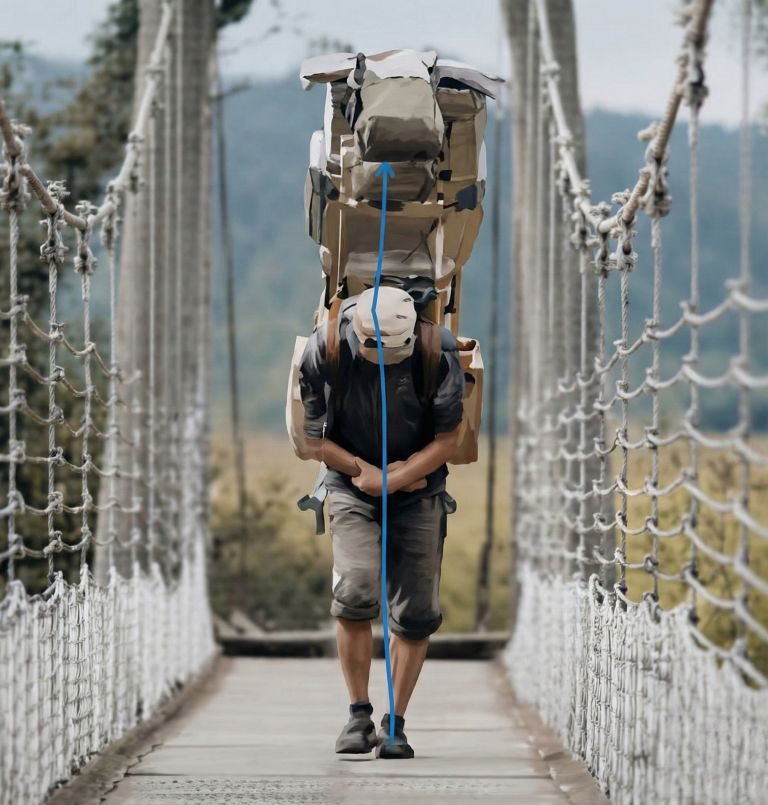 歩荷さんの写真をもう一度見てください。彼らは腕を前で組み、荷物をガッチリ固定しています。もしここで腕を大きく振れば、重心が左右にブレ、一歩も進めなくなるでしょう。